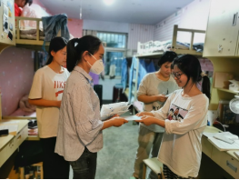 2022年5月24日,建筑工程学院学工党支部党员教师、专升本班级辅导员对隔离在8#楼、6#楼宿舍的专升本学生进行防疫物资的发放工作,防疫物资包括口罩、消毒水、消毒凝胶,整个活动严格遵守疫情防控的要求。