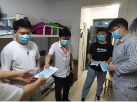在发放现场,由建筑工程学院党总支书记马春燕,党员教师刘高喜、李慧杰、王琮皓,专升本班主任鞠杰、苏玲敏和韩正好将防疫物资一一发放给学生,同时也将爱心传递给每一位学子,期间老师们不断叮嘱封校在宿舍的学生,隔离期间一定要严格遵守学校疫情防控的相关制度,保证宿舍及个人卫生,多通风,勤洗手,让病毒没有可乘之机,在隔离期间调整好状态,积极备考,以最佳的状态迎接专升本考试。