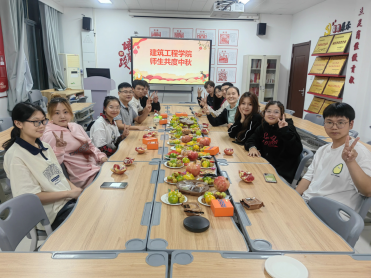 2023年9月29日,在中秋佳节到来之际,建筑工程学院党总支书记马春燕,辅导员李慧杰、宋春磊与学生欢聚一堂共度中秋佳节,发放“小筑牌”月饼,让同学们感受到家一般的温暖。
