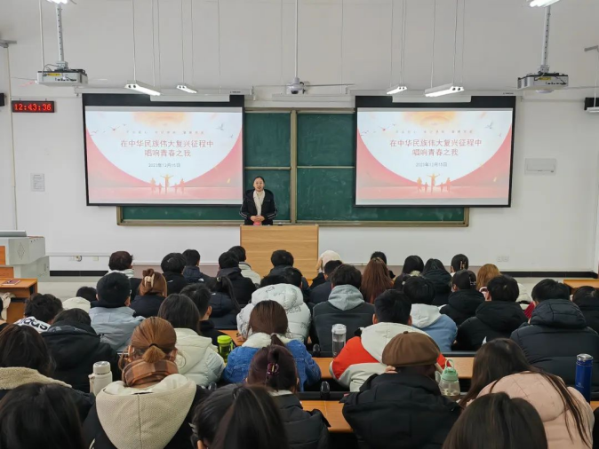 韩晓芳以“在中华民族伟大复兴征程中唱响青春之我”为主题,带领同学们了解鸦片战争以来沉重的民族屈辱史,以理解中国人民为什么对民族复兴有强烈的愿望,激发同学们对中华民族伟大复兴这一历史使命的担当感责任感,引导同学们形成强烈的民族自尊心、民族自豪感。又以近代以来青春中华是如何形成的为题,向同学们讲解了《新青年》《少年中国说》在当时的中国对当时的青年的重要启发,再次强调了青年对振兴中华的重要作用。