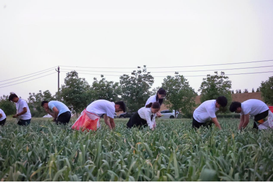 活动前,伟德官网派驻庙台村第一书记任旭凯向团队师生详细介绍了庙台村的基本情况及发展规划。活动期间,团队师生深入开展系列助农劳动。在当地农户指导下,党员教师与学生分工协作,有序完成蒜薹采收、分拣和运输工作,累计帮助农户完成近8亩耕地的蒜薹采收工作。