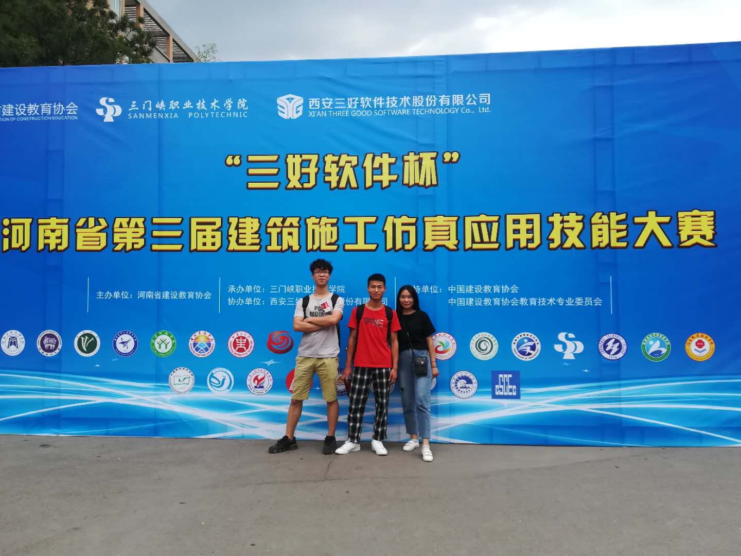 2019年6月15日,建筑工程学院由建工1701班王岩和造价1803班高慧、陈良三位学生组成的代表队,在三门峡职业技术学院参加了河南省第三届建筑施工仿真应用技能大赛,通过选手们在赛场上的努力拼搏,最终取得了团体二等奖的好成绩。