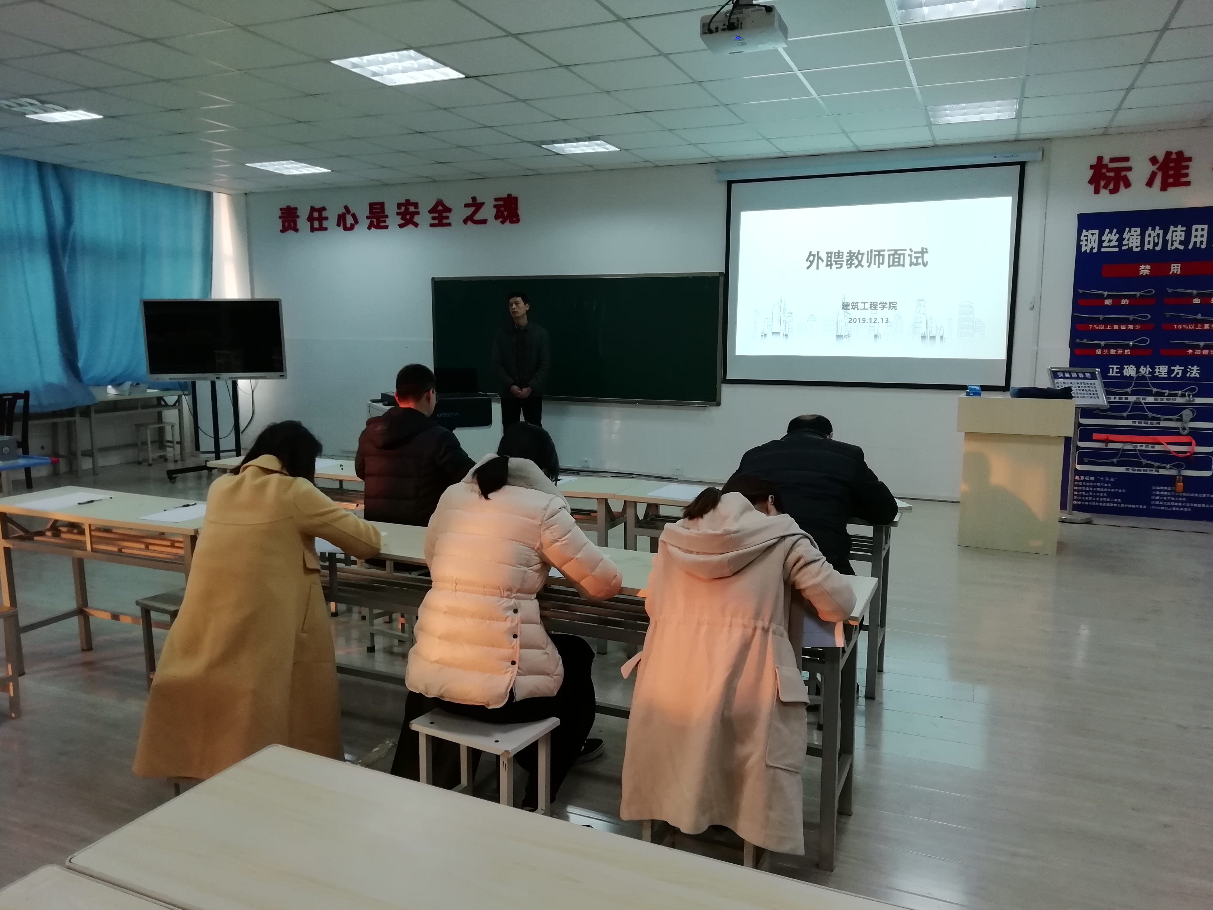 按照学校的工作要求,建筑工程学院如期安排2019-2020学年第二学期外聘教师试讲工作。2019年12月11日和13日,在E310建筑装配式实训室,学院办公室分两批对李刚、刘慧和刘越等8位外聘老师进行了试讲,院长张虎和人事处、教务处和教学发展质量管理处等部门有关人员出席。大家分别对试讲人员的师德师风、仪表仪态、专业水平、课堂把控能力和基本教学流程等内容进行了考核。