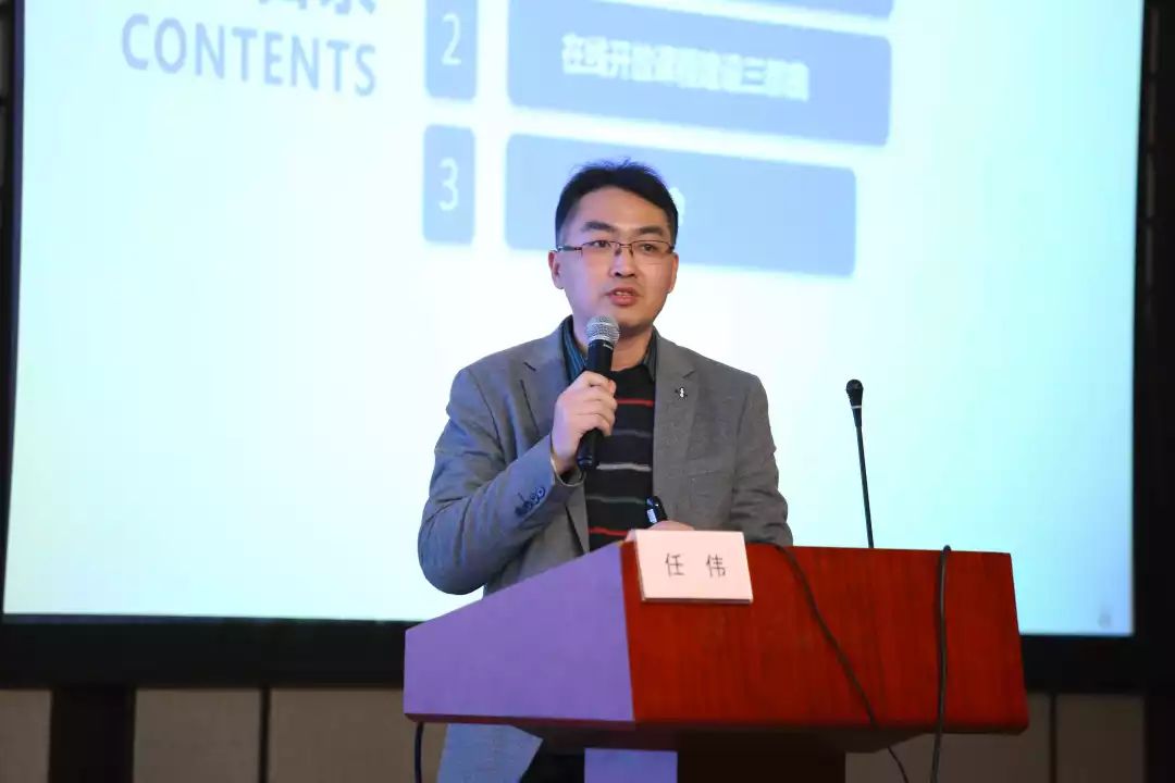 任伟老师就“伟德官网省级精品在线开放课程的建设经验”作主题报告,分享了在课程建设中学校层面的保障措施、团队分工及技术突破,总结了课程建设理念的四化,即“教学方式混合化”、“教学资源开放化”、“学生学习个性化”、“学习过程社会化”。