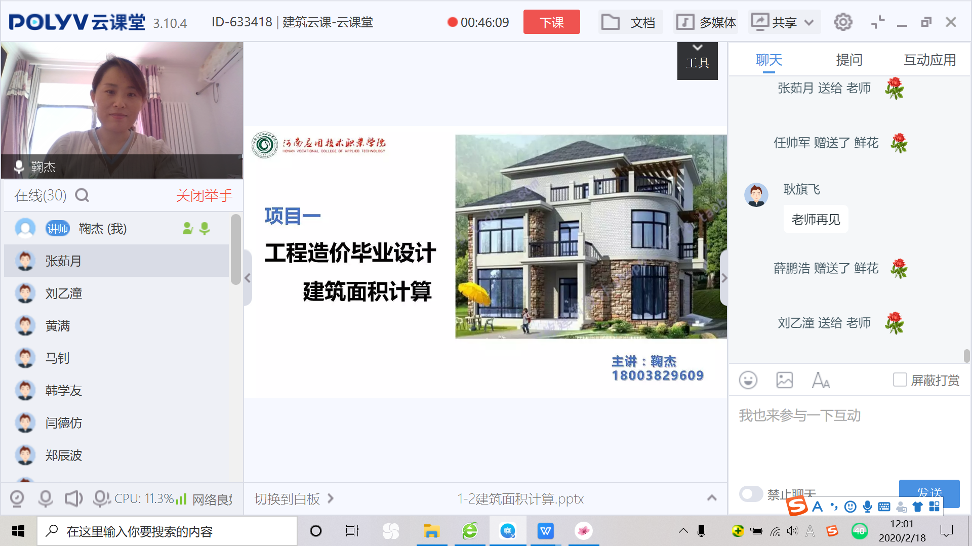 教师:鞠杰-毕业设计-造价1802-建筑云课