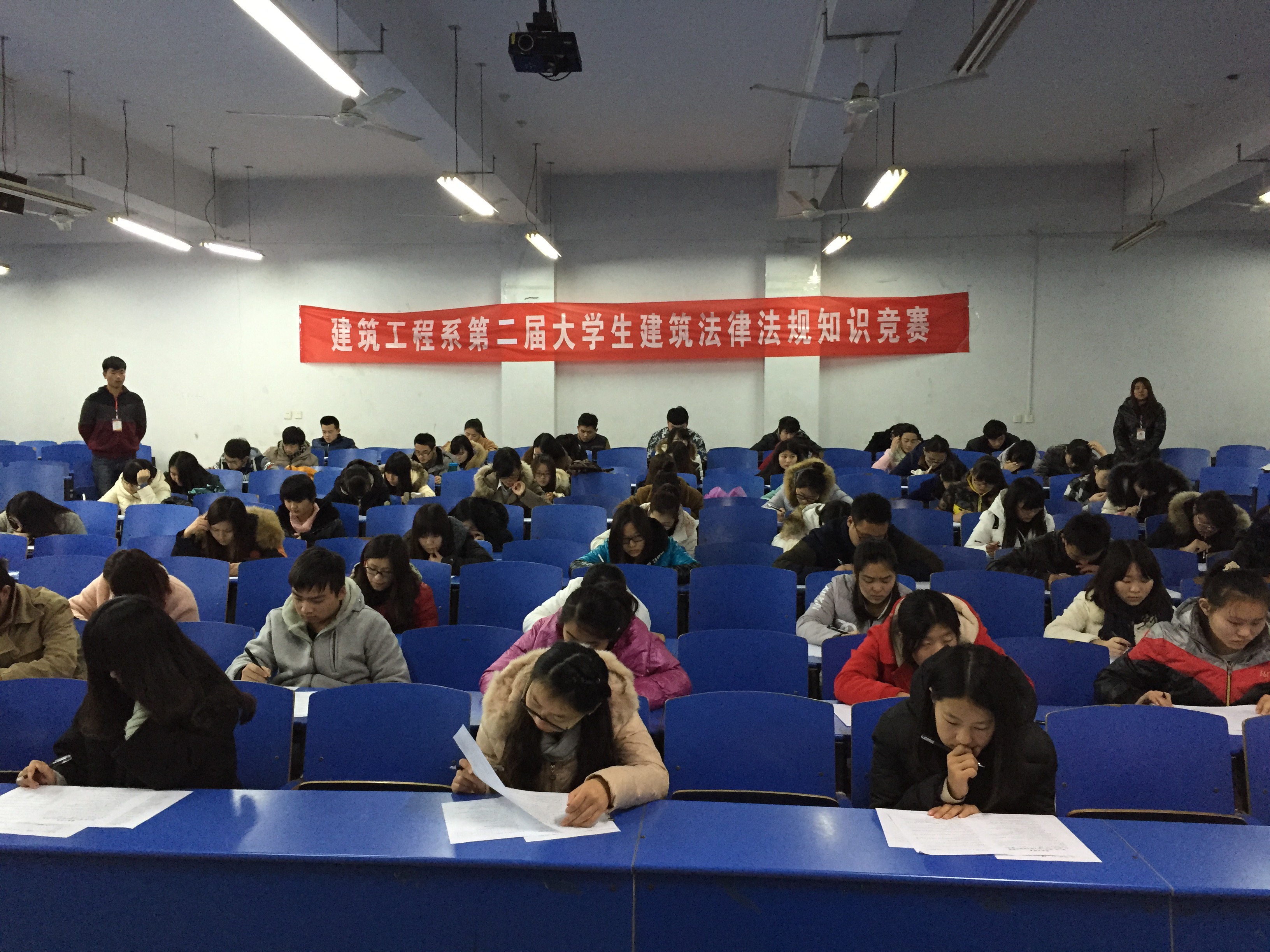 为了提高我系建筑法律法规知识水平,进一步加深同学们对建筑系法律法规的深层认识,我系特于2015年11月24日举行了第二届大学生建筑法律法规知识竞赛,促进了我系的学风建设行径。