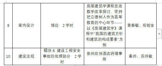 根据《中共河南省委办公厅印发<关于在全省开展“能力作风建设年”活动的实施方案>的通知》(豫办[2021]36号)《中共河南省委高校工委印发<关于河南省高校“能力作风建设年”活动实施方案>的通知》(豫高发[2021]164号)和中共河南省委教育工委、河南省教育厅“能力作风建设年”活动领导小组办公室印发《关于深入开展“大学习大培训大练兵大提升”活动的通知》等相关文件精神,建筑工程学院响应学校号召,开展了课程思政案例征集评比活动,老师们踊跃参加,共上交24份案例,学院组织评审小组,评选出一等奖3名,二等奖7名,三等奖14名。