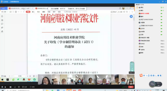 2022年5月5日下午,建筑工程学院以三个教研室为单位通过线上形式组织全体教师学习了伟德官网发布的《学分制管理办法(试行》、《学分(成绩)认定与置换管理办法(试行)》等文件。