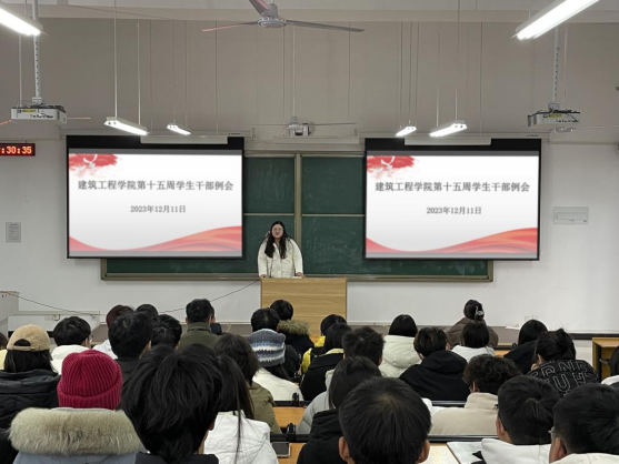 为提高学生干部先锋模范作用,调动学生干部积极性,引导学生干部明确工作方向和工作重点。2023年12月11日,建筑工程学院在开封校区A101(郑州校区B101)教室组织召开第十五周学生干部例会。会议由建筑工程学院党总支副书记刘亚娟主持,团总支书记王莹、学工办主任史真、辅导员赵影以及全体学生会成员、班长、副班长、团支书参加。