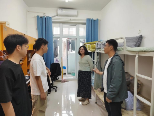 接着,辅导员来到学生宿舍,排查宿舍安全问题,并对学生进行安全教育,强调同学们严禁使用大功率电器,注意宿舍用电安全,提醒学生们天气越来越炎热,宿舍要常通风,保证宿舍空气流通。同时,还慰问了同学们的假期生活,叮嘱同学们要迅速调整心态,全身心投入到学习当中。