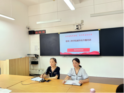 建筑工程学院举办2024级新生辅导员专题培训为进一步强化辅导员队伍建设,精细管理新生事务,确保工作高效有序进行,8月31日至9月1日,建筑工程学院举办2024级新生辅导员专题培训。学院党总支副书记刘亚娟、辅导员李慧杰、苏玲敏3名老师围绕新生班级建设、学生工作“五个一”、学风建设、学分管理制度等新生引航各个方面开展辅导员职业能力和工作方法专题分享。学院党总支书记张虎和新生辅导员参加本次培训,培训由刘亚娟主持。