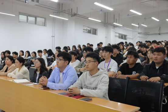 随后,王莹围绕团队凝聚力与学生会换届交接展开讲述。她指出凝聚力是团队高效运转的核心纽带,需要靠团结协作让集体智慧在服务同学与活动策划中充分释放。她谈到换届交接最重要的是责任意识、创新思维与团队精神的传承,呼吁23级干部做好“传帮带”,以经验助力成长,让24级同学更快融入,共同推动学生会工作再上新台阶。