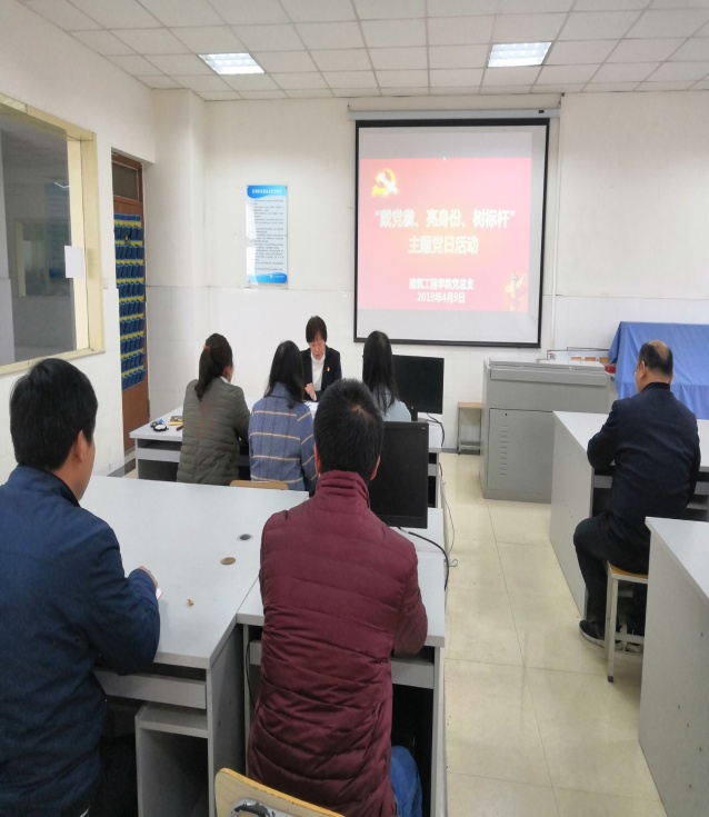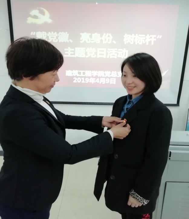 为深入贯彻党的十九大会议精神,认真学习习近平新时代中国特色社会主义思想,进一步教育党员同志牢记党员身份,不忘初心,牢记使命。2019年4月9日下午16:00,建筑工程学院党总支在E513举行“戴党员徽章、亮身份、树标杆”主题党日活动。学院党总支全体党员15人参加了该活动,本次活动由学院党总支副书记马春燕主持。