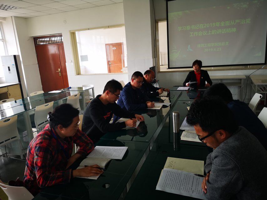 应学校党委工作要求,4月23日下午建筑工程学院党总支组织全体教职工在E311学习了秦书君书记在2019年全面从严治党工作会议上的讲话精神,会议由学院党总支副书记马春燕主持。