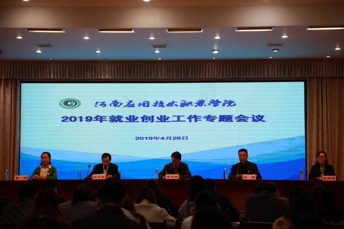根据学校工作安排,2019年4月26日下午,学校在实训中心二楼会议室召开了2019年就业创业专题工作会议。建筑工程学院领导张虎、马春燕和全体专兼职辅导员参加了本次会议。