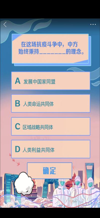 通过第五期青年大学习的学习和答题,同学们看到了我国作为一个大国的责任与担当,看到了疫情当下国际合作,人类命运共同体的形式,国家在疫情当下,保护我们,保护世界,作为学生为中华民族骄傲的同时,也要从身边做起,从小事做起,给有需要的人伸出援助之手,齐心协力共抗疫情。
