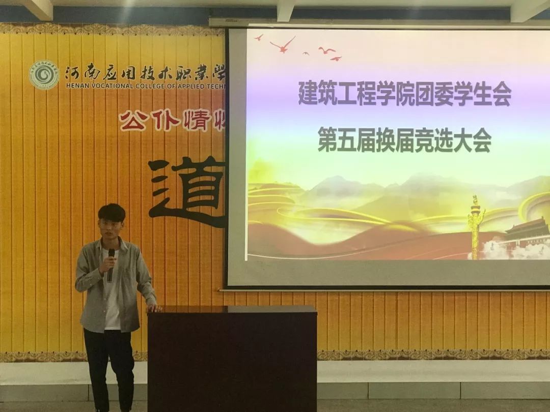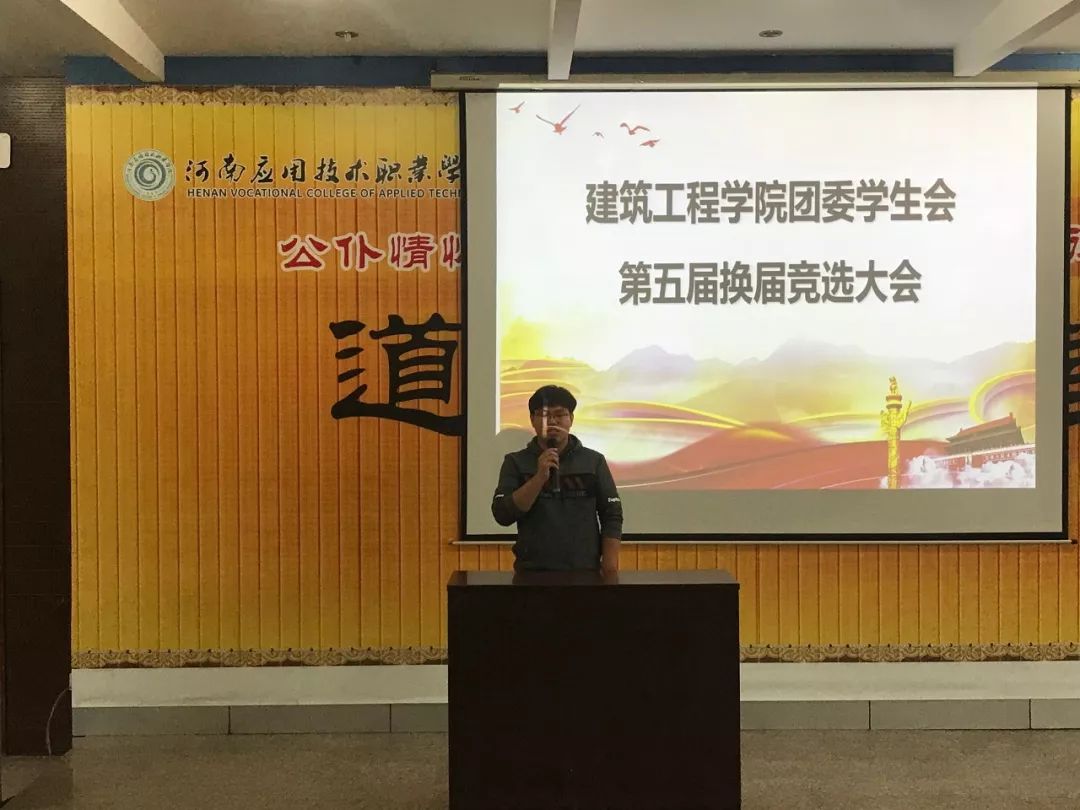 2018年9月20日中午12:30,建筑工程学院团学会第五届换届大会在B楼二楼学术报告厅进行竞选。建筑工程学院党总支书记马春燕老师与团总支书记刘亚娟老师主持了大会,