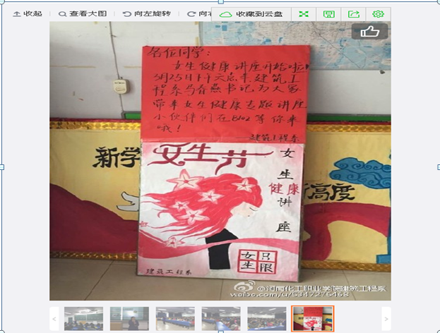 三月文明礼貌月,建筑工程系特举办了具有本系特色的学生活动,“建筑工程系女生专题讲座”。此次讲座为了增强本系女生安全防范意识,提高女生日常卫生生活,打造安全、绿色、幸福的校园生活。本次活动由建筑工程系马春燕书记主讲,并得到了全系上下女生的高度赞誉。讲座后,女学生们普遍反映从讲座中得到了很多常识和知识,是一次具有人生中重大意义的提高。