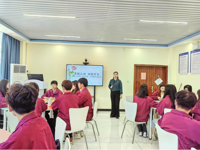 为深入贯彻落实习近平总书记关于加强学生心理健康教育工作的重要指示批示精神,不断提升大学生心理健康水平,增强学生心理调适能力,促进学生全面发展与健康成长,建筑工程学院于2023年10月26日在C213开展了以“音随心动,向内生长”为主题的心理健康教育特色活动。此次活动由王莹老师主讲,辅导员张慧、张寒冰、黄梦娜以及30名来自不同专业的学生代表参与了本次活动。