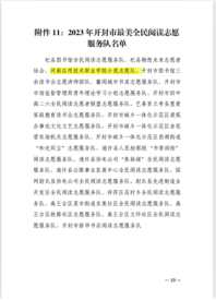 近日,由中共开封市委宣传部、中共开封市委组织部等多家单位联合发布了《中共开封市委宣传部等关于表扬开封市全民阅读活动先进典型的通知》,为激励先进、树立典型,对为推动全市全民阅读活动高质量发展的单位和个人进行了表彰。伟德官网建筑工程学院小筑志愿队被表彰为“2023年开封市最美全民阅读志愿服务队”。此次荣誉的获得,是对伟德官网青年学子积极参加志愿服务活动的充分肯定。