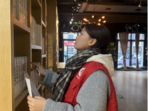活动当天,志愿者们早早来到图书馆,接受了基础的培训后,便迅速投入到各自的岗位中。有的在书架间整理书籍;有的则在阅读区为读者提供引导和帮助。在书架间,志愿者们仔细地整理书籍,确保每一本书都能被准确地归位,方便读者查找。在借阅处,志愿者们耐心地解答读者的问题,帮助他们快速找到所需的书籍。在阅读区,志愿者们认真整理桌面卫生,为读者营造一个舒适的阅读环境。