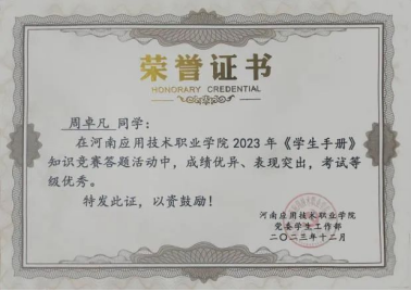担任学院志愿部副部长期间,全身心投入志愿服务工作。积极参与策划并组织运动会志愿服务、图书馆志愿服务、返家乡社会实践志愿服务等活动,带领同学们参与各种志愿服务,并在2024年荣获“开封市最美全民阅读志愿服务队”。认真做好志愿者的组织、协调和管理工作,确保活动顺利进行,为服务对象提供高质量志愿服务。负责志愿者的招募、培训和考核工作,通过开展专业志愿服务培训提高志愿者服务意识和技能水平,建立健全志愿者管理制度,加强对志愿者的日常管理和激励,调动志愿者积极性和主动性。积极宣传志愿服务活动,提高学院志愿服务的社会知名度和影响力,通过与社会媒体合作、开展志愿服务成果展示等方式,吸引更多同学加入志愿服务队伍。
