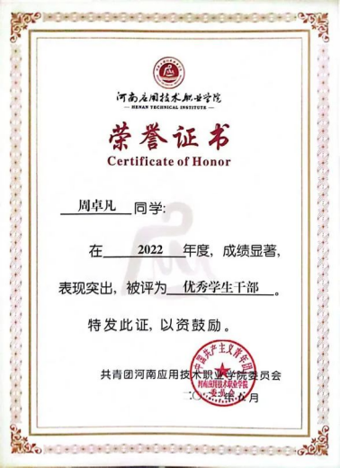 2022年12月 荣获院级“优秀团员”荣誉称号