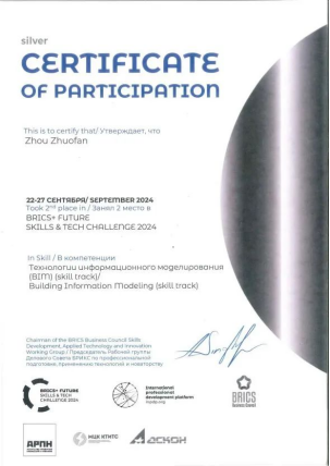 2024年9月金砖国家职业技能大赛国际赛国际银牌、中国区金牌