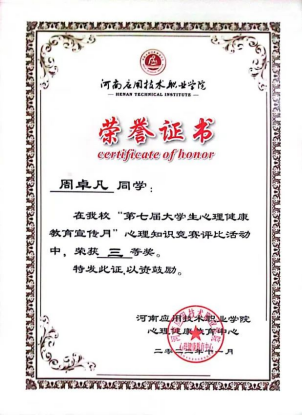 2022年11月 荣获伟德国际英国心理知识竞赛三等奖