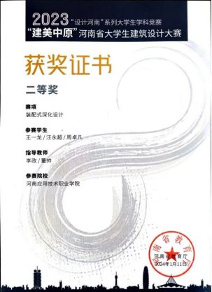 2023年11月 “建美中原”河南省大学生建筑设计大赛装配式深化设计赛项二等奖