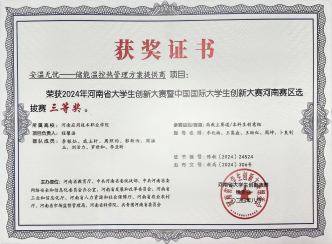 2024年8月河南省大学生创新大赛暨中国国际大学生创新大赛河南赛区选拔赛高教主省级三等奖