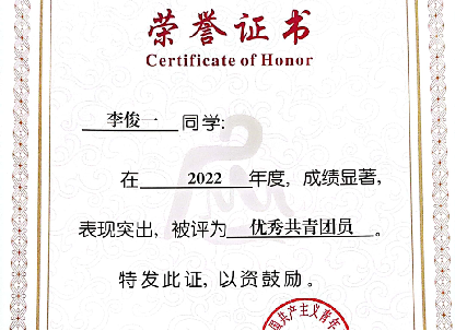 2023年08月,获得伟德国际英国2022年度优秀共青团员