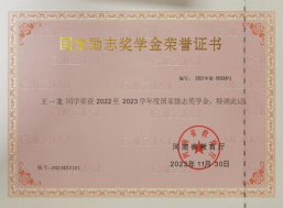 2023年12月 荣获鲁山县县级“优秀大学生志愿者”荣誉称号