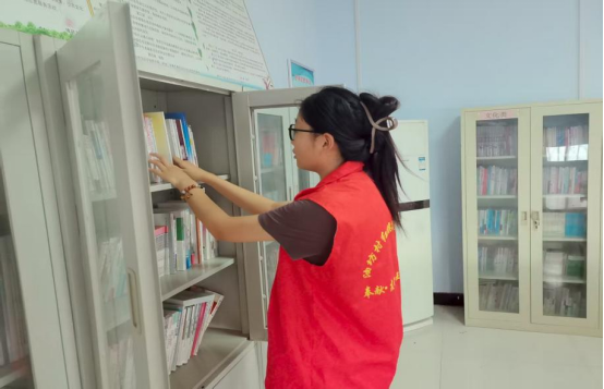 我统计了在柜图书大约有一千多册,涵盖了许多方面,如,文学类、农业类、科学类等。本次活动让自己的责任心和耐心得到了提高,游走在书籍之间我发现有许多封面破旧的图书,也有页面发黄的图书,这是村民们翻阅过的痕迹,是时间的见证。