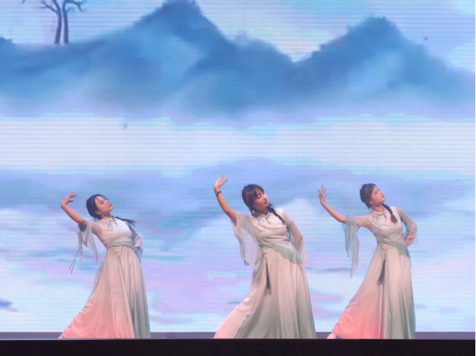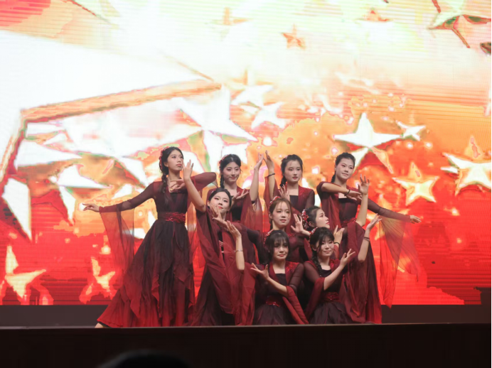 作为承载中华优秀传统文化的艺术载体,古典舞以其程式化的动作、意境悠远的表达,成为传递东方美学的重要纽带。本次活动中,学院打破传统美育课堂的局限,将舞蹈实践与审美教育深度融合。《万疆》一曲以大气磅礴的舞姿诠释家国情怀,红色正能量的内核与古典舞的典雅庄重相得益彰;而《花雨落》则以俏皮活泼的韵律、灵动轻快的舞步,展现古典舞的灵动之美,感受传统文化中细腻婉约的审美情趣。