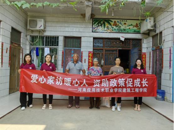 为深入贯彻党的二十大精神,推动学习贯彻习近平新时代中国特色社会主义思想主题教育走深走实,进一步落实落细国家资助政策,切实了解学院经济困难学生的实际情况,全面做好贫困生精准帮扶工作,根据学校党委学生工作部安排和我院实际情况,2023年8月11日—12日,建筑工程学院党总支副书记刘亚娟带领辅导员李慧杰、资助专员张慧先后前往开封市尉氏县大营镇、十八里镇等地开展资助政策宣传和贫困生走访慰问活动。