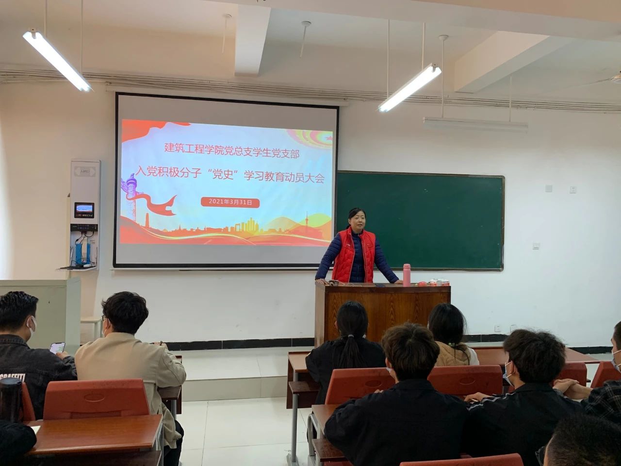 为帮助入党积极分子进一步加强党史知识的学习,提高自身素质,切实保障新发展党员质量,保持党组织的先进性和纯洁性,提高党的战斗力,把严发展党员入口关。2021年3月31日,建筑工程学院党总支学生党支部开展了“入党积极分子‘党史’学习教育动员大会”。本次会议东西校区同时进行,由支部书记马春燕同志和组织委员刘亚娟同志主持,李慧杰老师、孙雪理老师、全体入党积极分子参与会议。