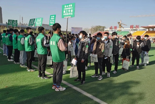 考试期间,考生佩戴口罩,在入校大门处进行体温检测,依据个人绿色健康码有序排队入校。从进校到考场,沿途多出设立提示牌,志愿服务引导员随处可见。从考生进校门、现场信息确认、考生进考场大楼到进考场,整个考区各项工作井然有序、有条不紊进行。