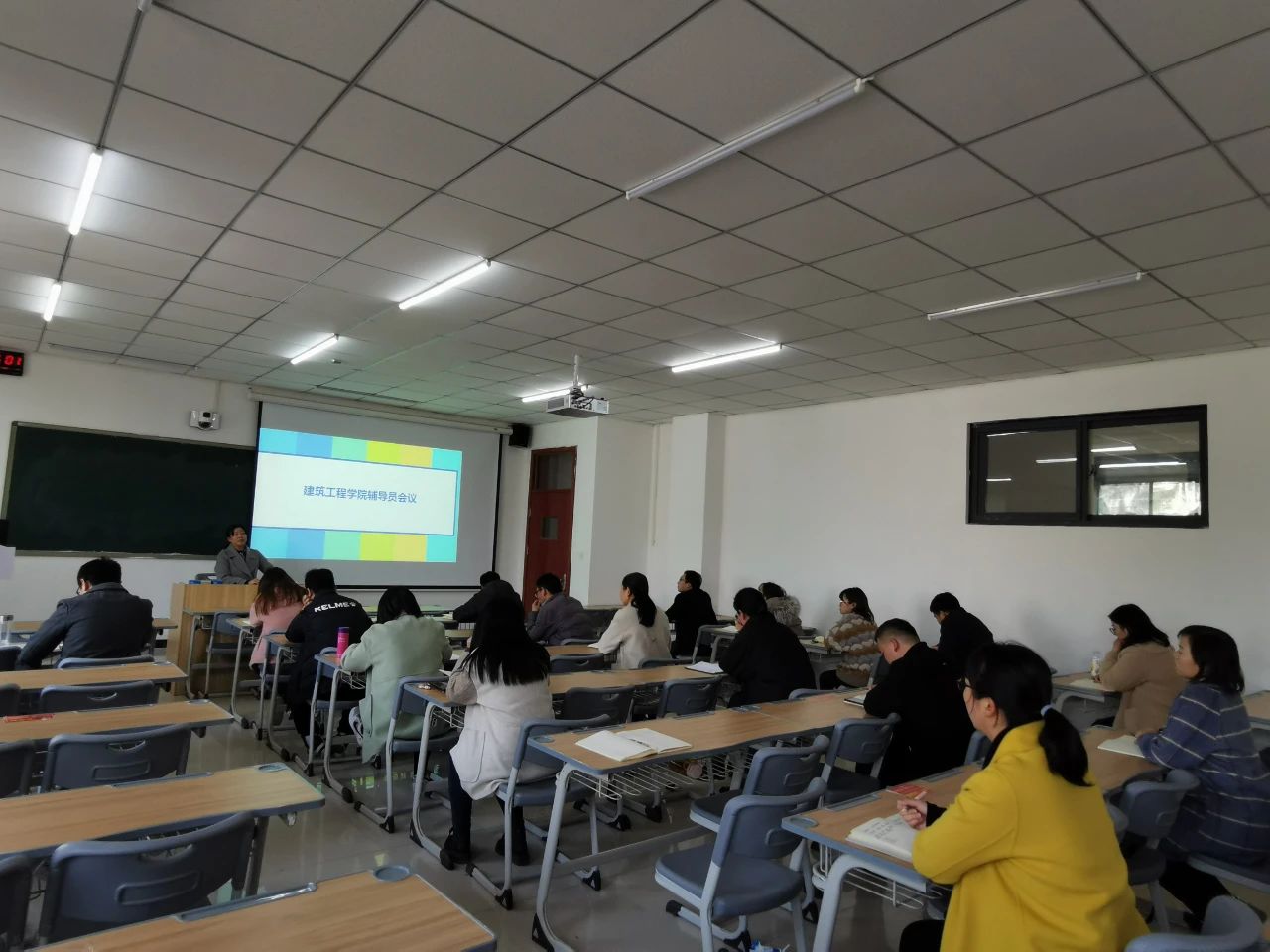 接着,马书记对学生日常管理工作向大家进行了强调,包括钉钉打卡、宿舍安全、双创竞赛、18级毕业环节注意事项,以及各班级家庭收入低、学业困难学生数据库建立等问题。在建党100周年纪念活动为契机,马书记要求辅导员要扎实开展学生党史学习、社会实践、志愿服务等丰富多彩的班级活动,引导学生自觉培养家国情怀,促进学生身心全面发展,增强班级凝聚力,展现建工学子团结一心,勇往直前的精神面貌。