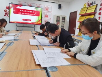 马春燕代表建筑工程学院与各年级辅导员签订辅导员工作职责告知书。